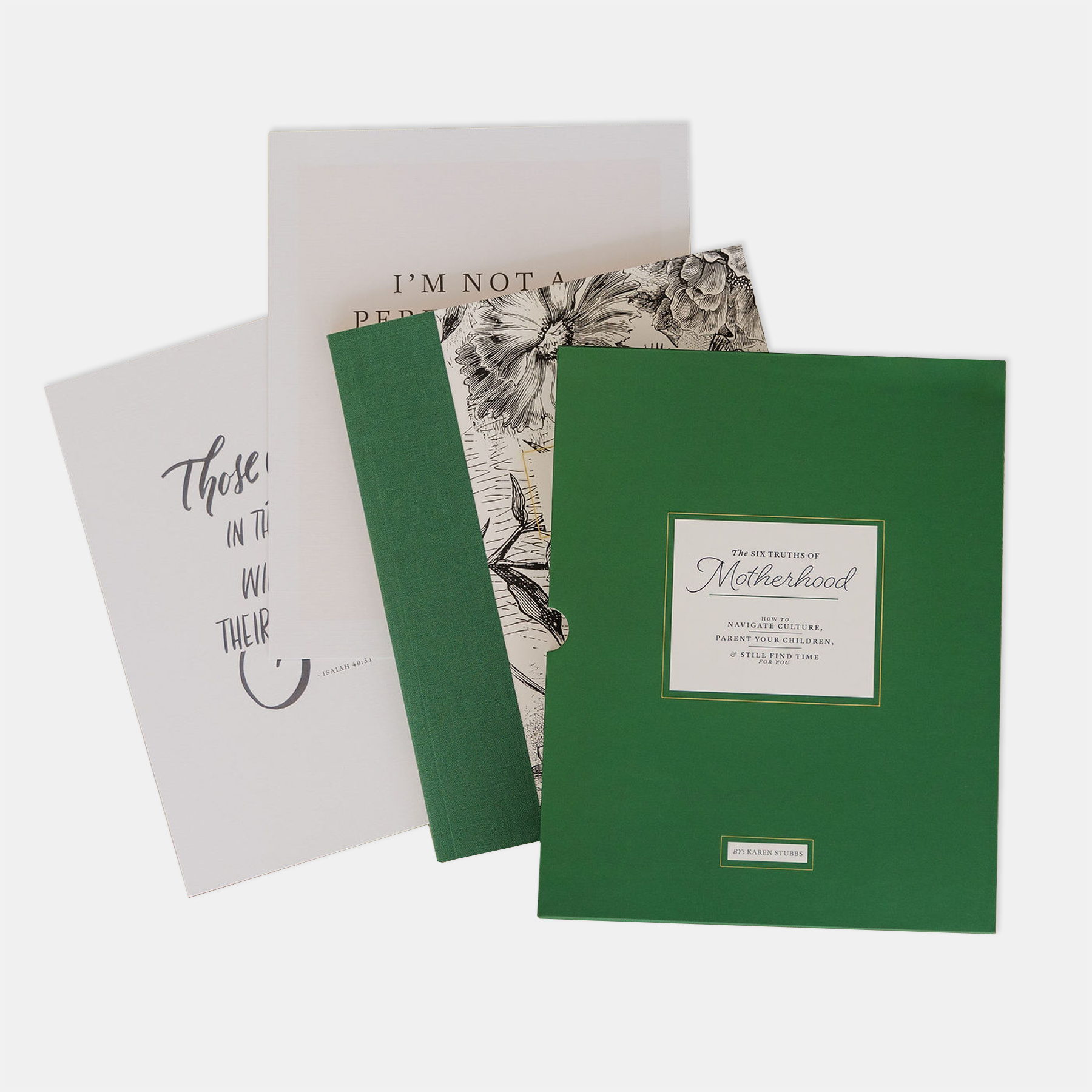 A companion to the Six Truths of Motherhood video study, this deluxe edition gives you even more connection and encouragement with everything the regular guide offers—plus two beautiful 8×10 art prints for your home or small group space. It’s perfect for working through on your own or walking alongside a group of moms.